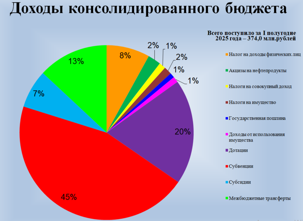 За отчетный период доходная часть консолидированного бюджета ОМР исполнена в объеме 374 млн рублей, объем налоговых и неналоговых доходов района составил 56,9 млн рублей. Расходная часть исполнена в объеме 381,7 млн рублей. Удельный вес расходов на финансирование социальной сферы составил более 80%.