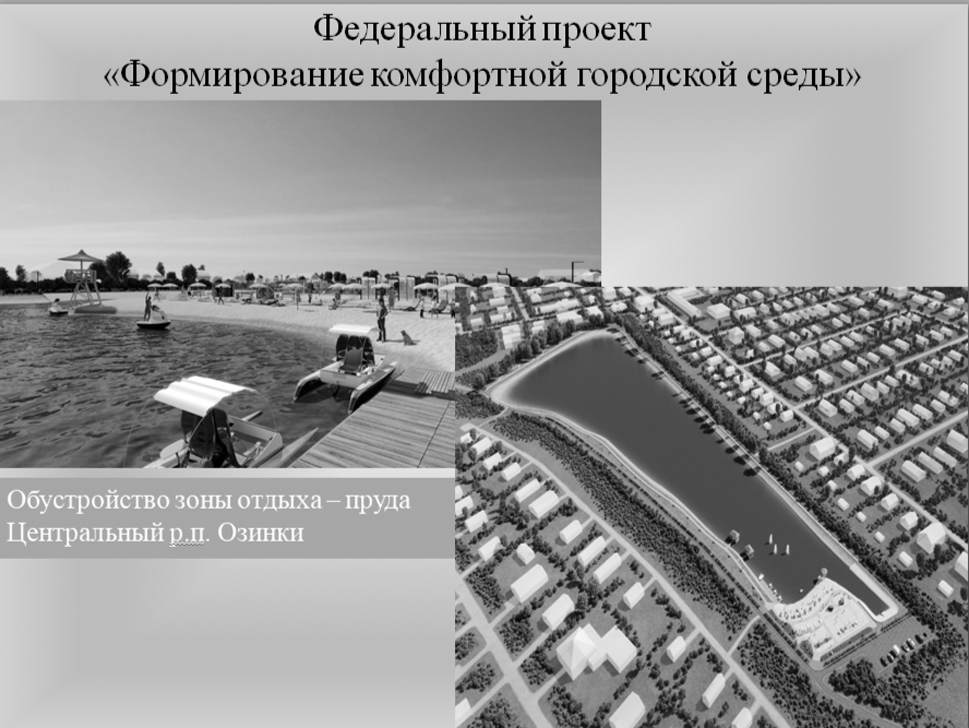 В рамках федерального проекта «Формирование комфортной городской среды» в текущем году началось обустройство общественной территории – зоны отдыха пруда Центральный р.п. Озинки. Здесь будут проведены работы по частичной очистке прибрежной территории водоема и устройство системы перелива воды.