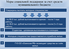 На сегодняшний день на условиях внешнего совместительства в ОРБ осуществляют трудовую деятельность специалисты узкой квалификации: дерматовенеролог, оториноларинголог, кардиолог, уролог, онколог, биолог, хирург, врач функциональной диагностики, рентгенолог. В этом году после окончания обучения по целевому направлению ожидаются 3 врача по специальностям: педиатрия и лечебное дело. Студентам-целевикам выплачиваются стипендии, утверждены выплаты молодым специалистам, предоставляется служебное жилье.
