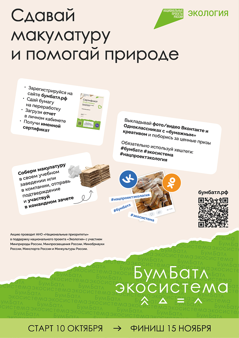 В этом году масштабный экологический проект организован АНО «Национальные приоритеты» совместно с Всероссийским экологическим общественным движением «Экосистема». Ключевая цель акции – сокращение излишнего потребления бумаги, организация системы ее переработки и формирование экологической культуры.