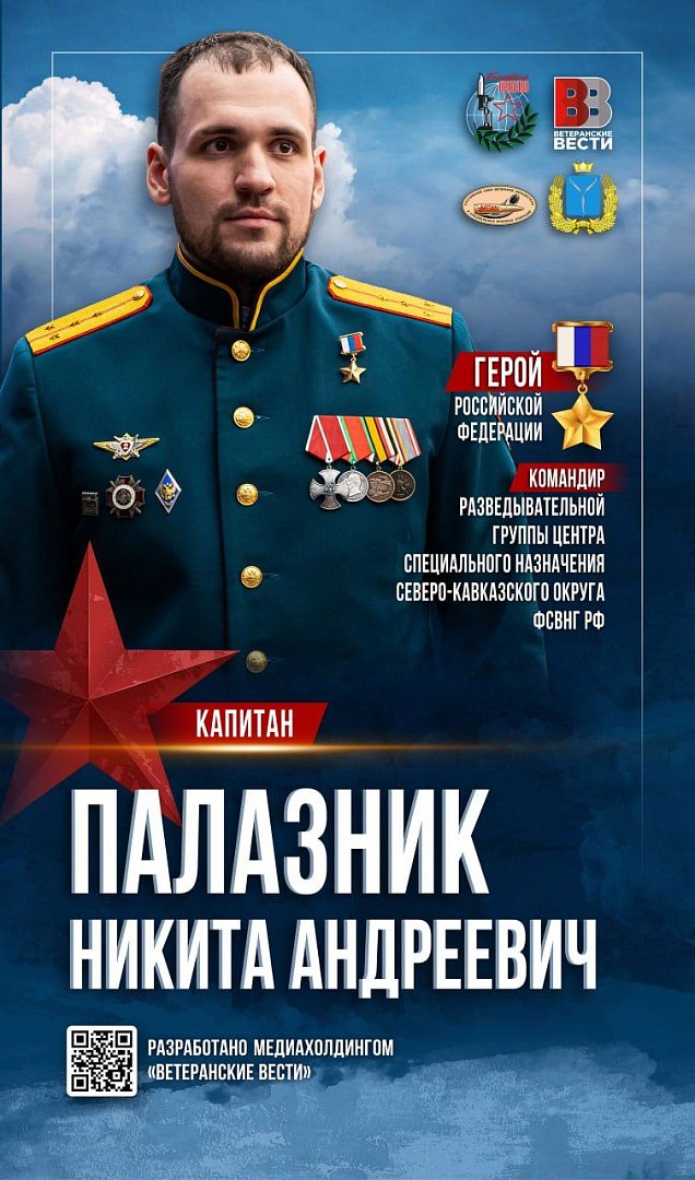 Подробнее ознакомится с биографиями и подвигами Героев России можно на сайте (https://xn--64-6kcan3adlwfz2bym.xn--p1ai/heroes/?HERO_TYPE=530919).