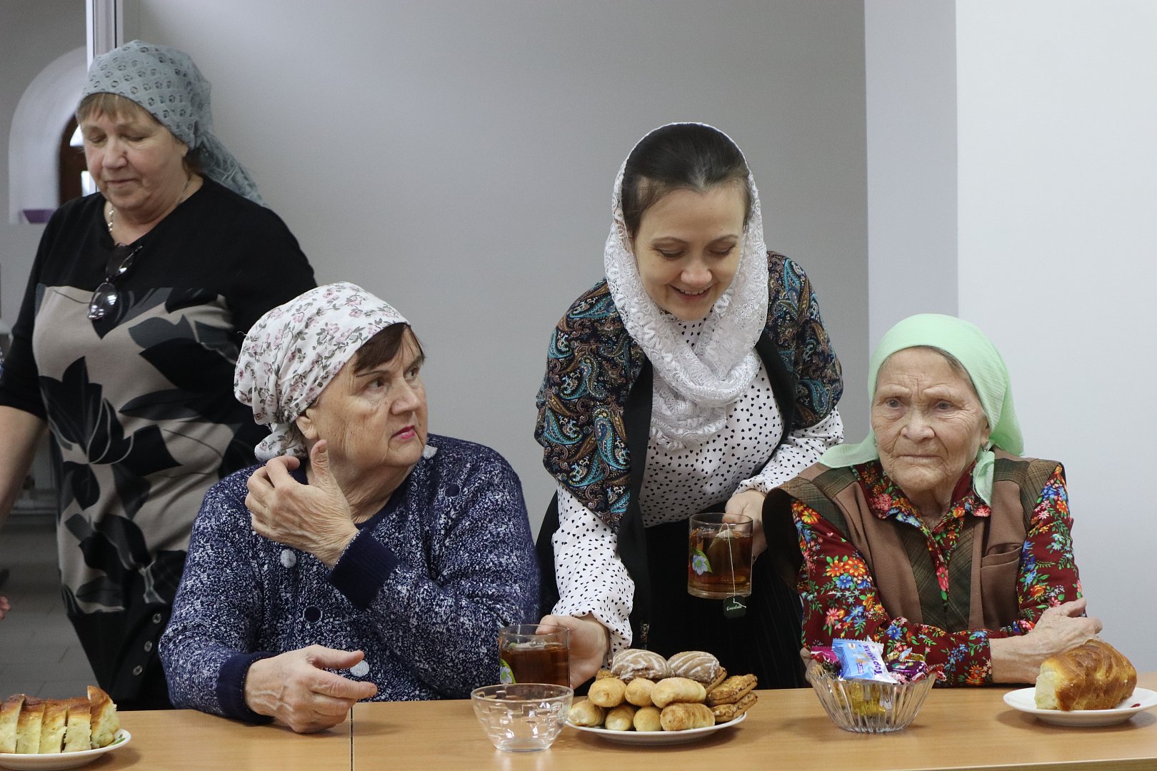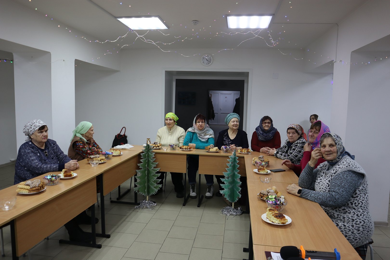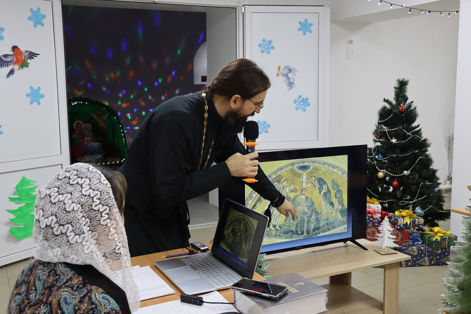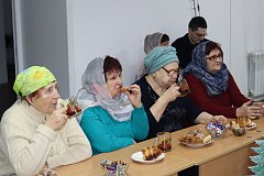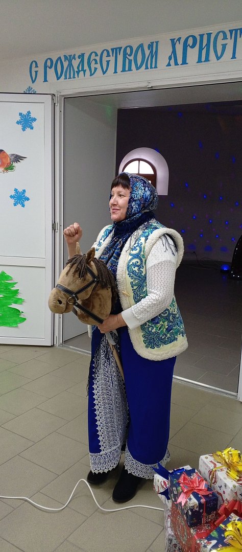 В доме Господнем присутствующим не пришлось скучать, к ним на огонек забежала Зимушка-зима и Лисичка-сестричка, порадовали гостей загадками, плясками, сказкой «Курочка Ряба», в исполнении самих же гостей, а также одарили присутствующих сладкими новогодними подарками.