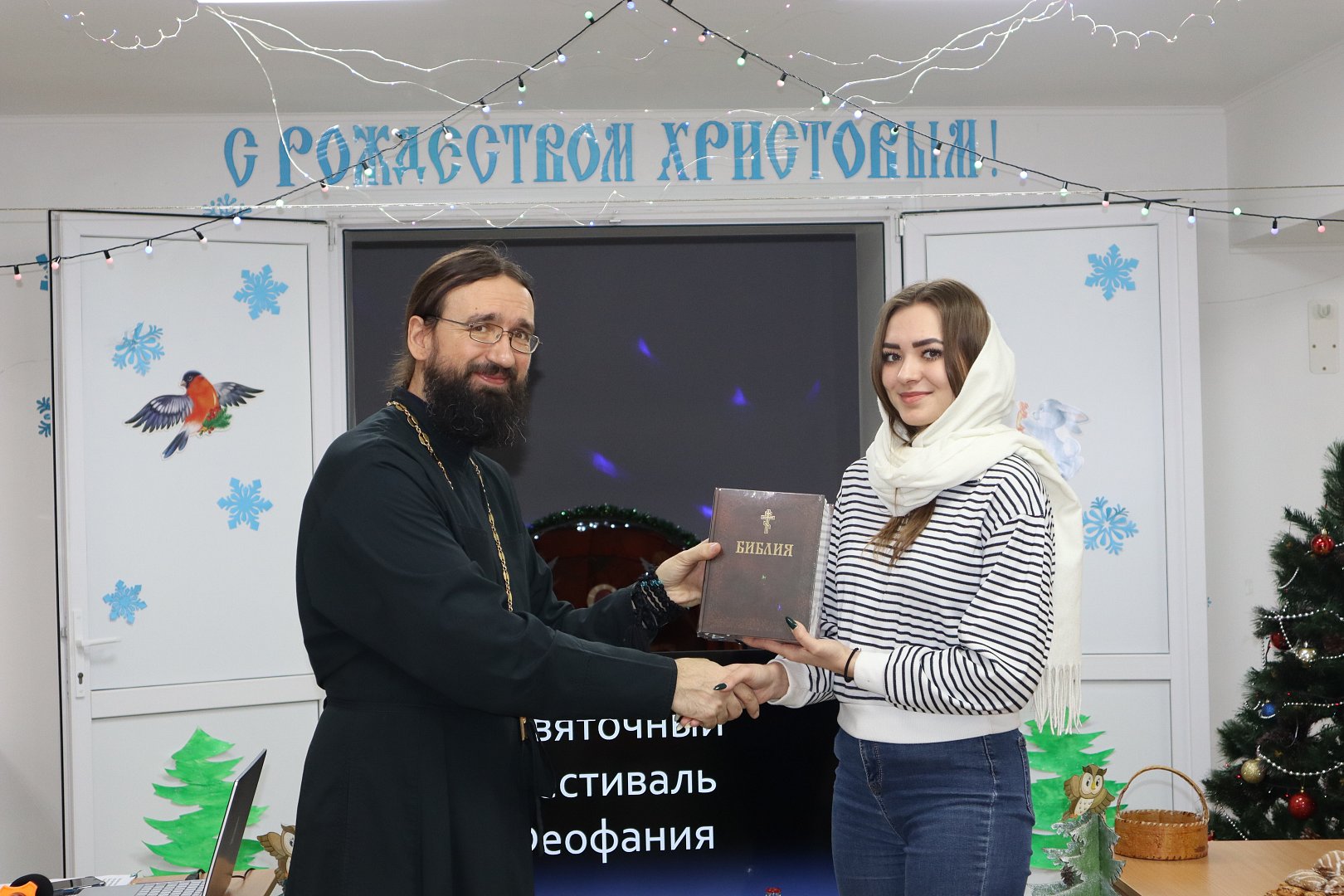 Представителю КЦСОН Отец Стахий вручил Библию, чтобы у получателей услуг была возможность, духовно обогатится в своем центре и подробнее ознакомится со Священным Писанием.