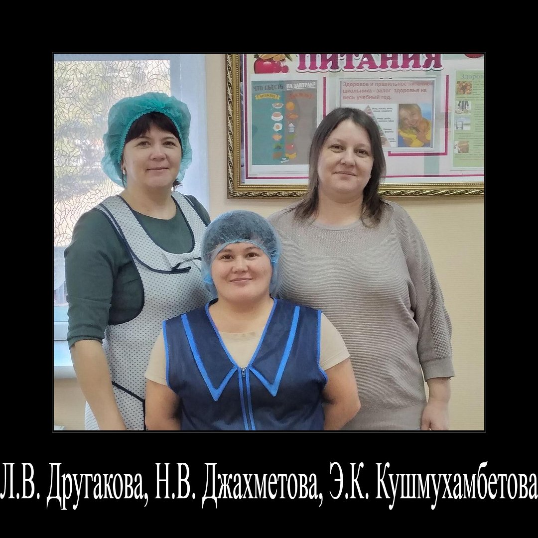 Трудовой коллектив столовой средней общеобразовательной школы п. Сланцевый Рудник представляют повара – Любовь Викторовна Другакова (тринадцать лет стоит у плиты) и Эльвира Каиргалиевна Кушмухамбетова (четыре года в поварском деле), в числе вспомогательного персонала – Светлана Евгеньевна Тимошенко. В должности завхоза семь лет трудится Наталья Владимировна Джахметова. Работники школьного пищеблока приступают к выполнению своих обязанностей с семи утра, чтобы успеть приготовить горячий обед для 116 учеников и обеспечить почти пять десятков воспитанников сельского детского сада трехразовым питанием. Коллектив ответственно относится к своей работе, соблюдает санитарные нормы и технологию приготовления блюд.
