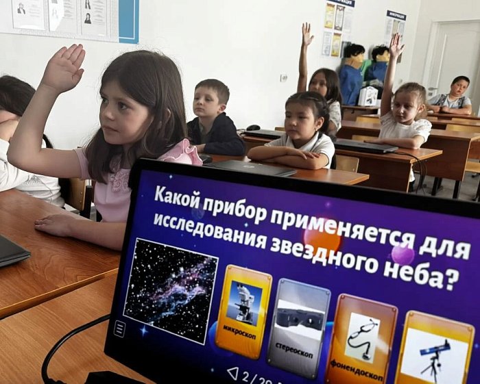 В преддверии праздника для ребят 1 «б» класса советником директора по воспитанию и взаимодействию с детскими общественными объединениями Н.Б. Жармановой и педагогом дополнительного образования Е.И. Скоробогатовой на базе «Точки роста» был проведен «Космический КВИЗ». В начале мероприятия ребята послушали интересный рассказ учителя об истории этой памятной даты, о первом полёте в космос. Затем все вместе отправились в «космическое путешествие». Это было увлекательное занятие. Маленькие исследователи с интересом погрузились в мир звёзд, планет и космических чудес, открывая для себя новые горизонты. Дети вспомнили название планет Солнечной системы, их удаленность от солнца, отгадывали тематические срифмованные загадки, отвечали на вопросы. Правильно выполняя задания ребята показали хорошие знания. Участники написали необходимые качества, которыми должен обладать космонавт. Все испытания первоклашки прошли успешно, показав свою, смекалку и находчивость. Школьники не просто изучали далекие галактики и загадочные планеты, но и дали волю фантазии, создав уникальную живую фигуру ракеты.