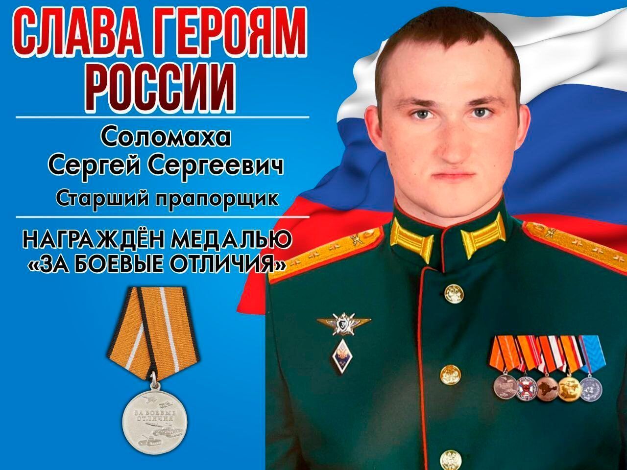 о не получилось, поэтому по окончанию срочной службы наш земляк подписал контракт. С марта 2013 года и по настоящее время служит командиром взвода в звании старшего прапорщика. В 2014 году участвовал при выполнении специальных задач на территории Украины, освобождении Луганской народной республики и Крыма. В 2015 г. и 2021 г. был в командировках в Сирии. В 2018 г. С. Соломаха окончил Саратовскую государственную юридическую академию.