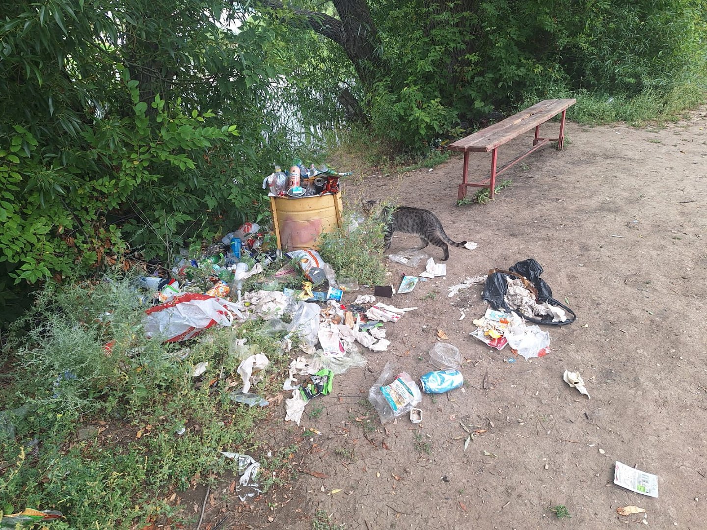 Пруд – это вообще отдельная история. Напрямую из расположившегося здесь магазина, навьючившись пакетами с пивом и закуской, толпы молодёжи поднимаются к дамбе. Там – мусор, грязь, пивная тара… Просто ужас. При этом, будучи школьниками, они сами же и убирали за старшими своими товарищами, принимая участие в различного рода экологических акциях. Но, по прошествии времени, сами стали такими же безалаберными и наглыми. Пьют так, как будто бояться, что пиво и алкоголь скоро закончатся. Но это ладно. Это их здоровье и боль матерей. А вот то, что оставляют они после себя – это наказуемо. Несколько штрафов на тех, кого застали на этом месте, – и будет им урок. Посмотрите сами на эти фото. Урны вроде бы есть, но молодёжь, вливающая в себя алкоголь на фоне закатного пруда, вблизи к прохладе, устав после жаркого дня, употребляет его гораздо больше, чем думают устроители мусорных баков. Рядом - кошки и собаки, которые являются разносчиками заразы. Целые своры собак бегают возле сетевого магазина, в надежде на сердобольность людей.