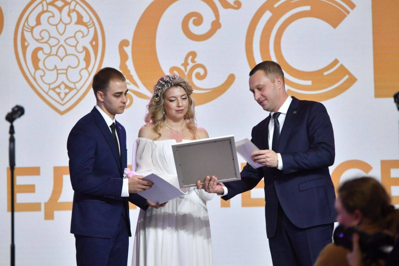 Поздравить молодых пришли Губернатор Саратовской области Роман Бусаргин и гости Дня региона.