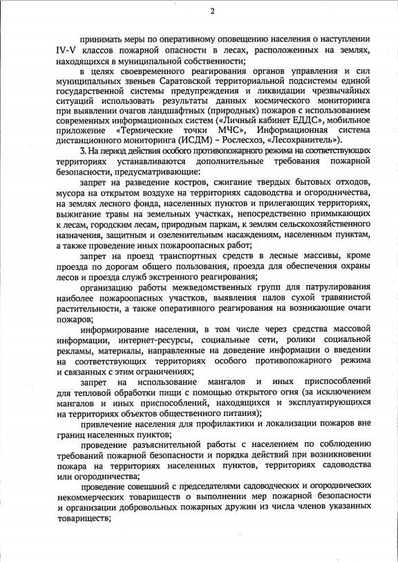 На территории Саратовской области с 13 мая 2024 года и до стабилизации обстановки устанавливается особый противопожарный режим