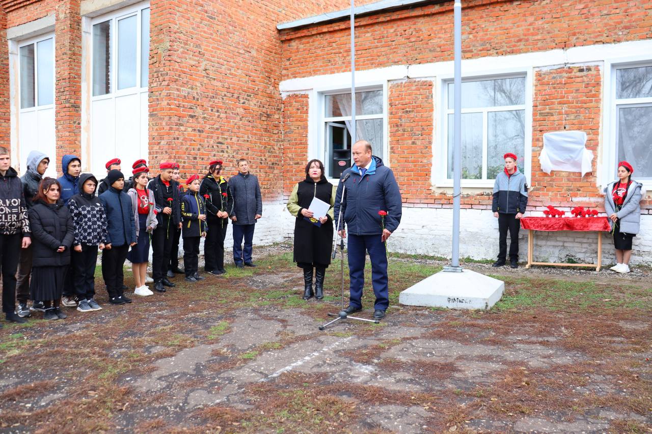 Почетное право открыть мемориальную доску было предоставлено председателю районного общественного Совета Романчук П. И. и участнику Всероссийского патриотического движения «Юнармия» Харитонову Е.