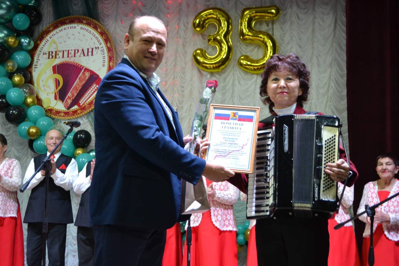 27 октября украшением сцены районного Дома культуры стали уважаемые участники народного самодеятельного коллектива вокально-хоровой группы «Ветеран», которые отмечали своё 35-летие творческой деятельности.