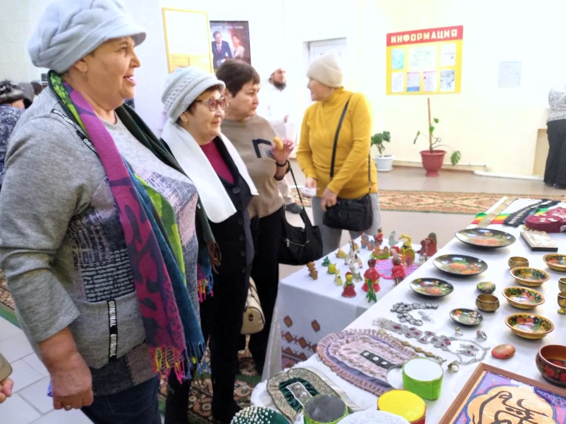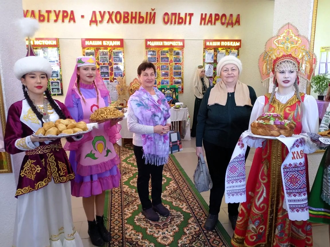 До начала официальной части посетители смогли рассмотреть экспонаты выставки, где были представлены национальные украшения, головные уборы и разнообразные поделки. Особый колорит мероприятию придавали девушки в народных костюмах, угощавшие всех желающих национальной выпечкой.