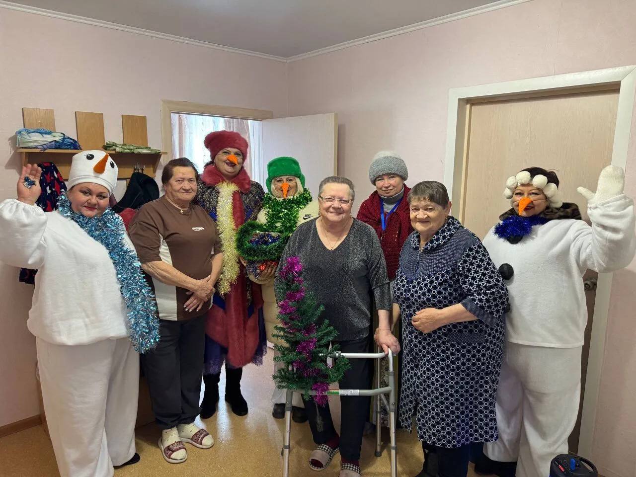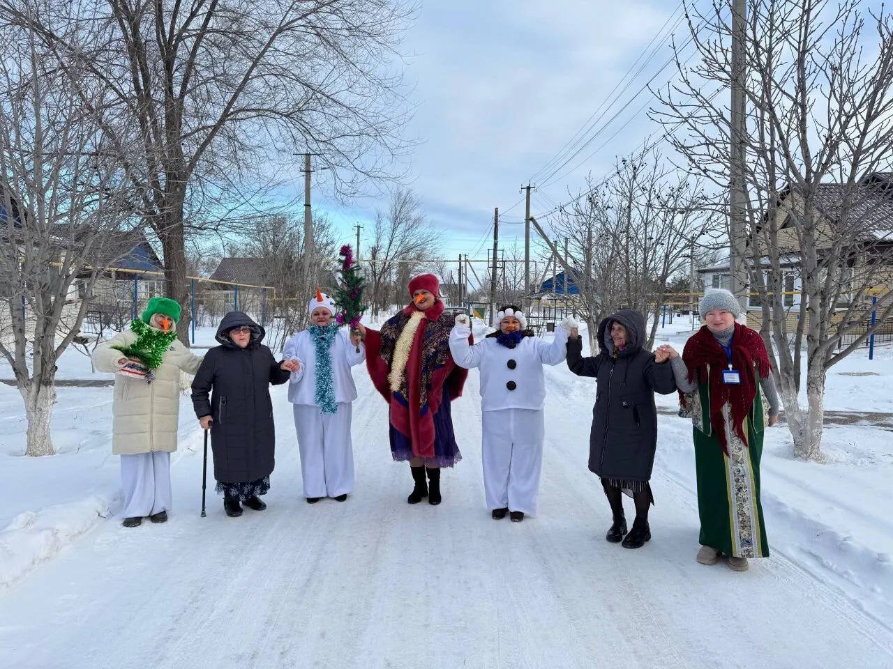 Компания весёлых Снеговиков заходила в дома с поздравлениями, дарив тепло и хорошее настроение.