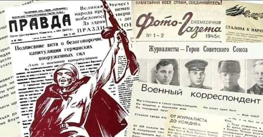 В то время была перестроена структура СМИ. Сократилось вдвое число центральных газет (до 18), уменьшились их тиражи. Перестали выходить многие специализированные, отраслевые, а также комсомольские издания. Сократилась и местная пресса. Но вместо этого была организована сеть новых изданий, прежде всего фронтовых (военных подразделений всех уровней - армейские, бригадные, стрелковые, танковые, общевойсковых соединений, войск противовоздушной обороны). Всего было создано к концу 1942 г. около 700 таких газет. В армии и на флоте выходило 5 центральных печатных изданий. Главная из них - «Красная звезда». В ней с началом войны начали печататься известные писатели А. Сурков, В. Гроссман, К. Симонов, А. Толстой, И. Эренбург и другие. 1200 номеров этой газеты военной поры - это героическая летопись нарастающей мощи армии и военного искусства ее военачальников. Центральным органом на флоте была газета «Красный флот», а в конце 1941 г. стала издаваться специальная для личного состава военно-воздушных сил «Сталинский сокол». Затем «Красный сокол» - для личного состава авиации дальнего действия. Выходили и журналы для армии и флота, политического и литературно-художественного направления.