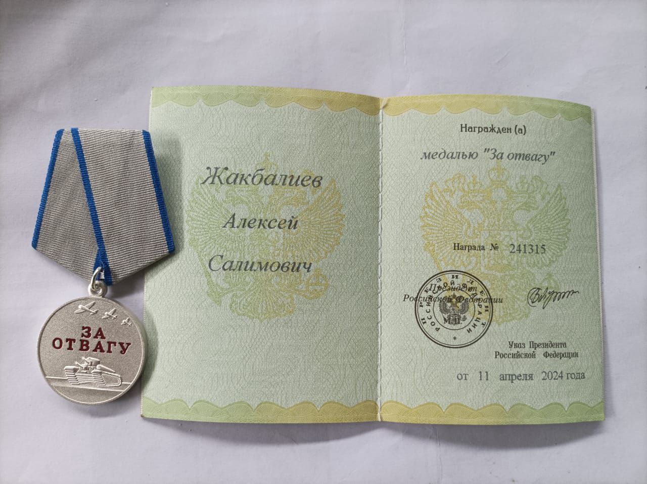 Председателю Дергачевского отделения "Боевого Братства", командиру противотанкового взвода 72 именной Саратовской бригады, старшему лейтенанту Жакбалиеву Алексею вручили вторую медаль "За отвагу".