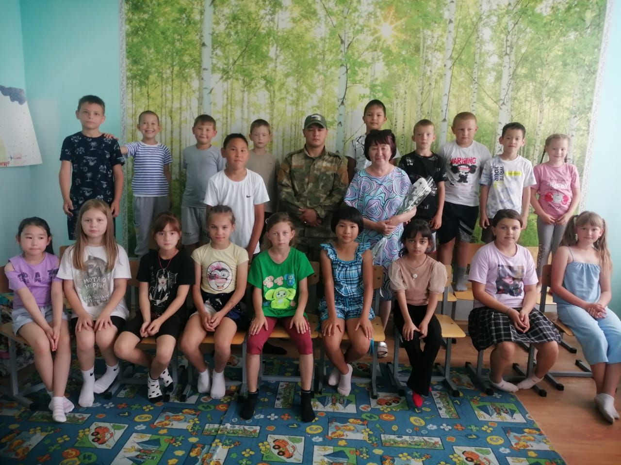 15 июня 2023 г. учащиеся МОУ «ООШ р.п. Озинки» встретились с участником СВО выпускником школы Усеновым Д. К.