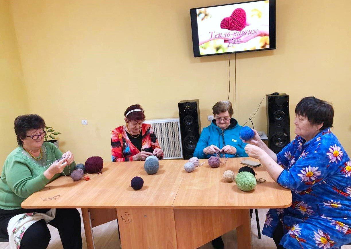 «Серебряные» волонтёры собрались в комплексном центре социального обслуживания населения Озинского района, чтобы связать тёплые носки для участников специальной военной операции.