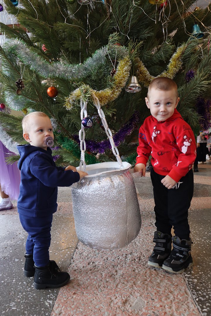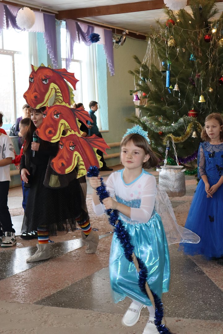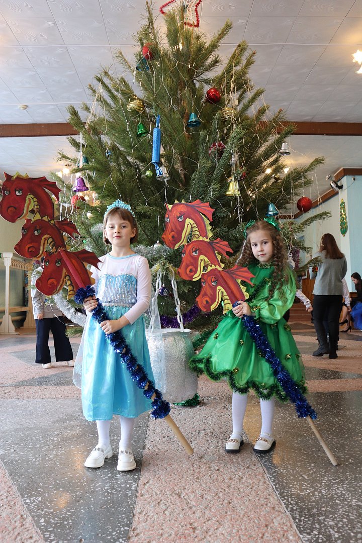 Как известно с давних времен, ключ к сердцу ребёнка лежит через сказку. В вихре очередной удивительной истории в этот раз и оказались участники праздника. Вместе с Дедом Морозом, Снегурочкой, Бабой Ягой и Кикиморой они готовили волшебное зелье силы для дракона, символа наступающего года. Дети охотно помогали сказочным персонажам найти необходимые ингредиенты. Все с большим удовольствием пели и танцевали, веселились, играли и выполняли задания.