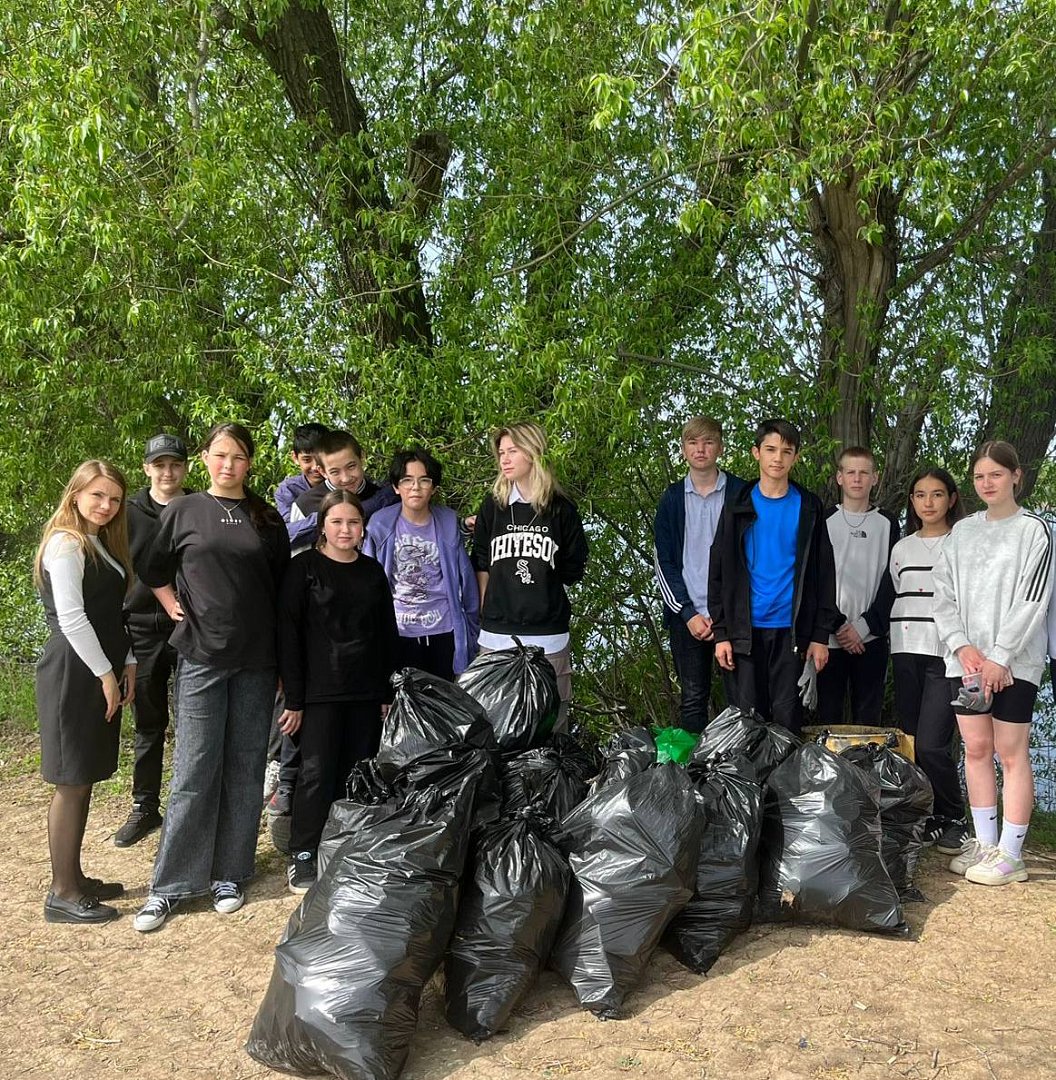 Ребята приняли на себя ответственную миссию по уборке от бытового и древесного мусора на берегу центрального пруда р. п. Озинки.