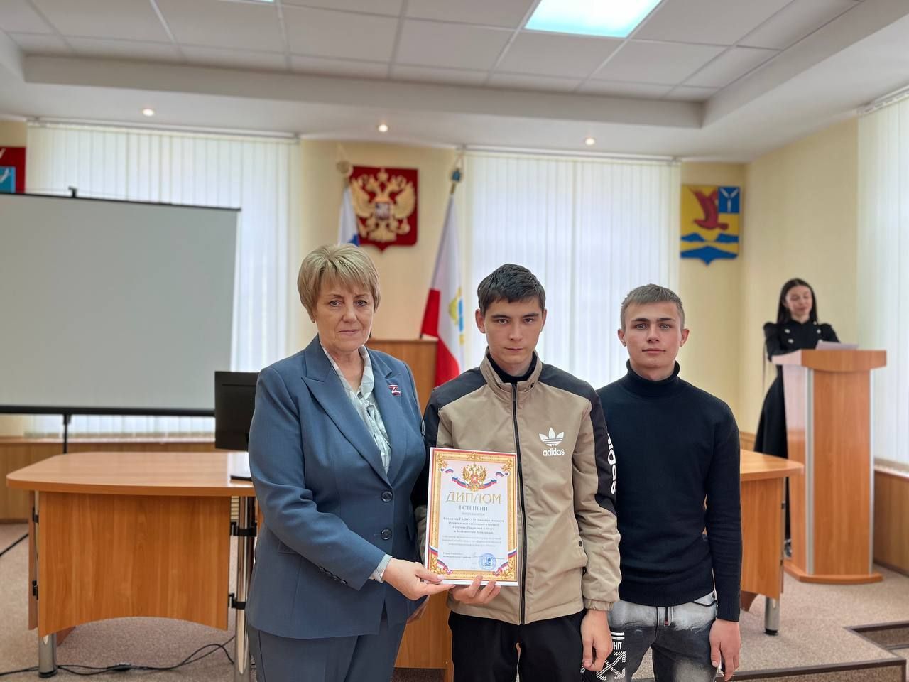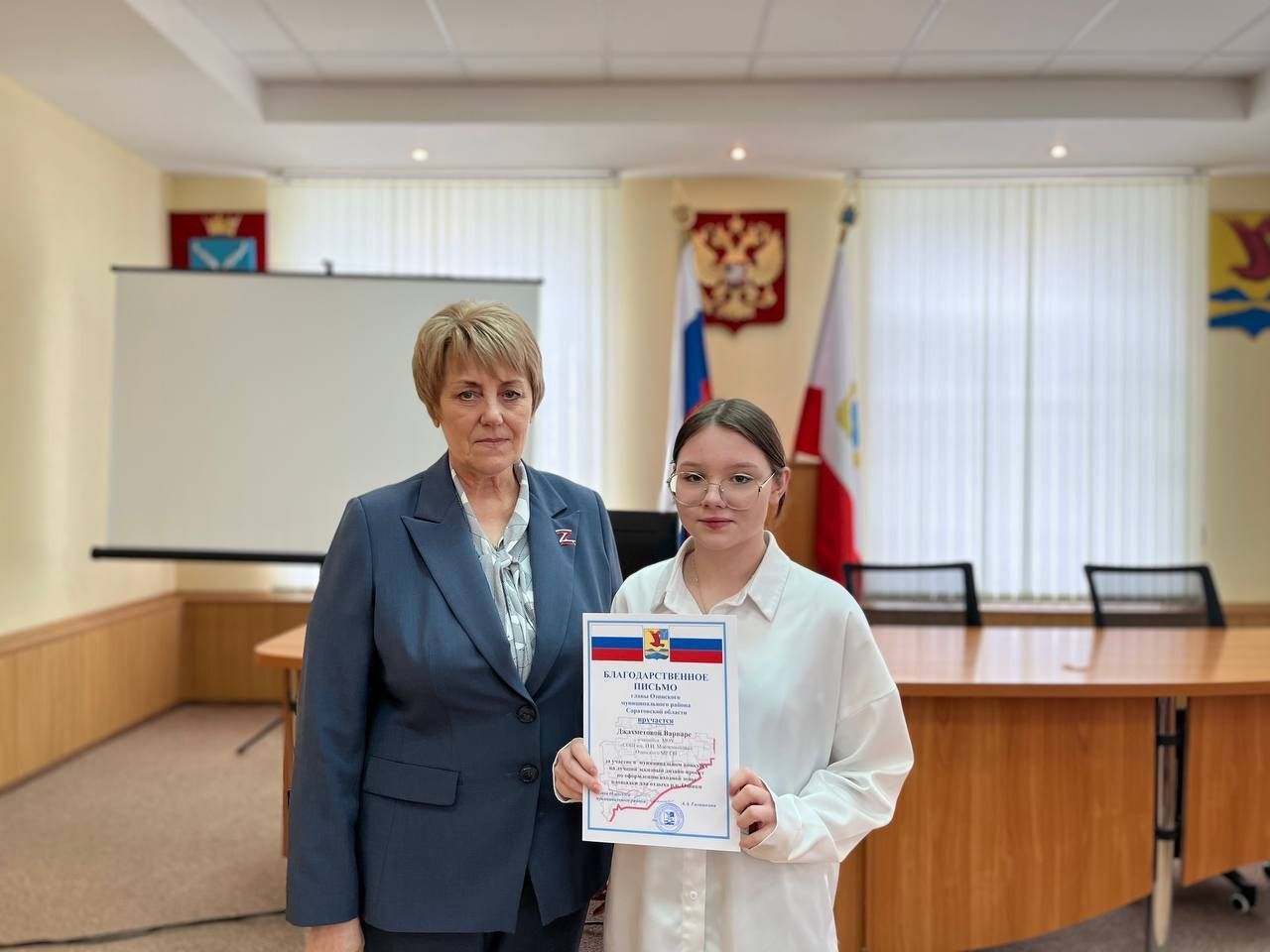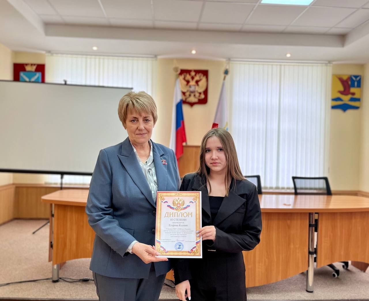 Диплом II степени у представителей «Основной общеобразовательной школы р.п. Озинки» - Гориной Надежды, ученицы 9 класса; Пчёлкиной Ирины Владимировны, социального педагога; Фоменко Анастасии Владимировны, советника директора по воспитанию и взаимодействию с детскими общественными объединениями;