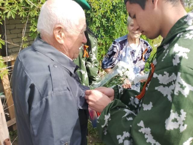 В преддверии празлника Дня Победы, участники старшей группы патриотического клуба «Бекет» отдела внестационарного обслуживания, студенты 21 группы Озинского техникума строительных технологий и сервиса провели акцию «Спасибо тебе, ветеран».