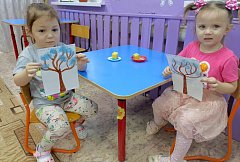 В Озинском детском саду №2 "Радуга" (корпус №1) в разновозрастной группе раннего возраста "Васильки" прошло занятие по художественно-эстетическому развитию, на котором дети занимались рисованием на тему: "Дерево в снегу".
