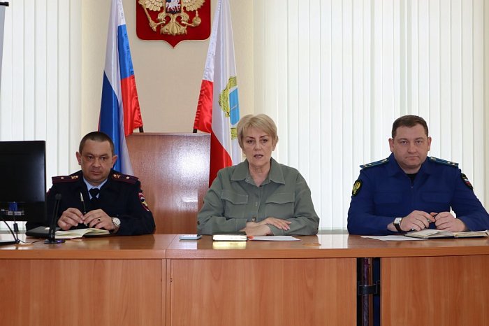 Совещание возглавляли: глава района Антонина Алексеевна Галяшкина, прокурор района Дмитрий Николаевич Кречетов и заместитель начальника ОМВД по Озинскому району, майор полиции Александр Сергеевич Щербаков.
