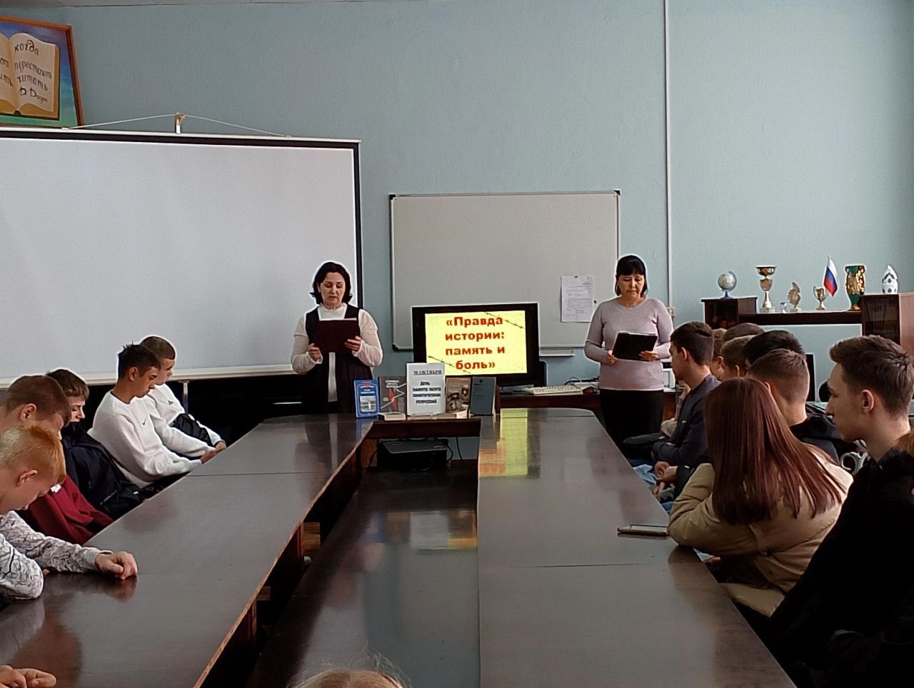 В рамках этого дня, сотрудники Озинской центральной библиотеки провели интересное мероприятие для студентов 1 курса "Озинского техникума строительных технологий и сервиса" – час откровенного разговора «Правда истории: память и боль».