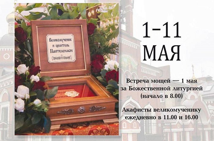 Ежедневно с 11:00 до 16:00 будет совершаться молебен с акафистом великомученику и целителю Пантелеимону.