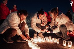 В день Национального траура у монумента «Журавли» в парке Победы на Соколовой горе активисты региональных отделений Волонтёров Победы, Молодой Гвардии, Волонтёрской роты Боевого Братства, Сельской молодёжи, Движения Первых, представители общества «Жены Героев» и Боевого Братства и многих других общественных объединений зажгли свечи, как символ глубокой скорби и сочувствия семьям погибших в результате терракта в Крокус Сити Холл.
