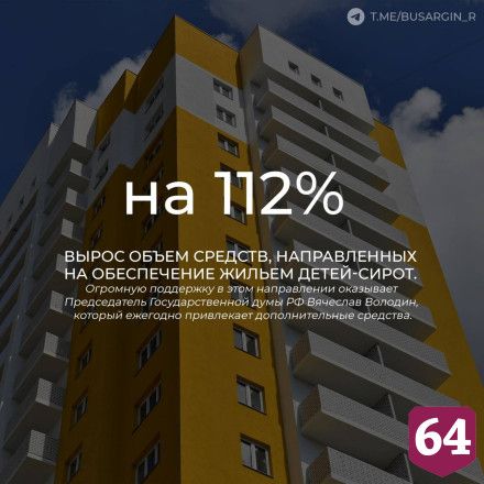 На 112% выросло обеспечение жильем детей-сирот. Поддержку в этом направлении оказывает председатель Государственной думы Вячеслав Володин, который ежегодно привлекает дополнительные средства.