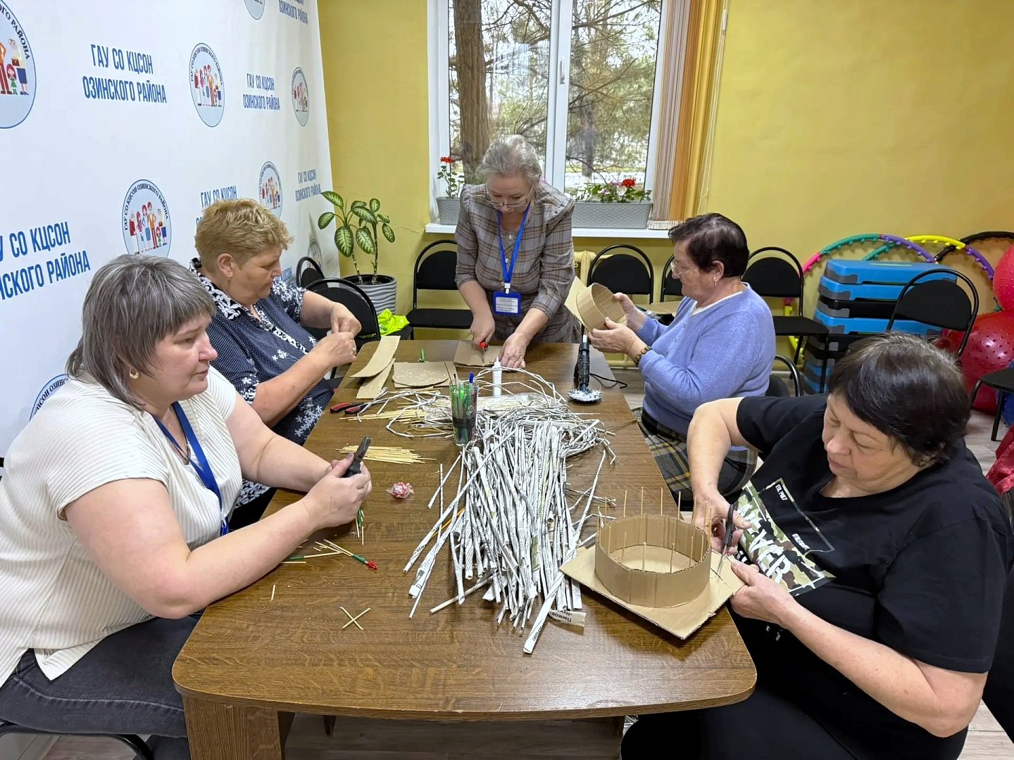 В творческой мастерской Комплексного центра социального обслуживания Озинского района получатели услуг изготовили сувенирные корзинки из бумажных трубочек и картона.