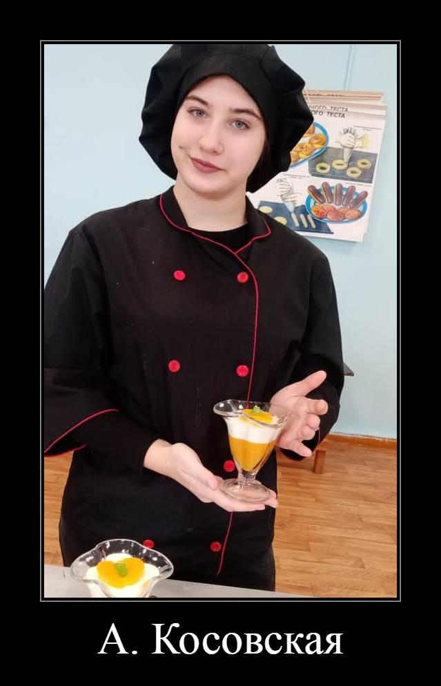 Заканчивает свое обучение в стенах Озинского техникума студентка 4 курса Алина Косовская, обучающаяся по профессии «Повар, кондитер». Она отличница, выполняет обязанности старосты группы. Кроме того, это скромная, талантливая и целеустремленная девушка, которой легко даются не только теоретические знания, но и практические навыки. В 2023 году Алина стала победителем конкурса профессионального мастерства «Лучший по профессии».