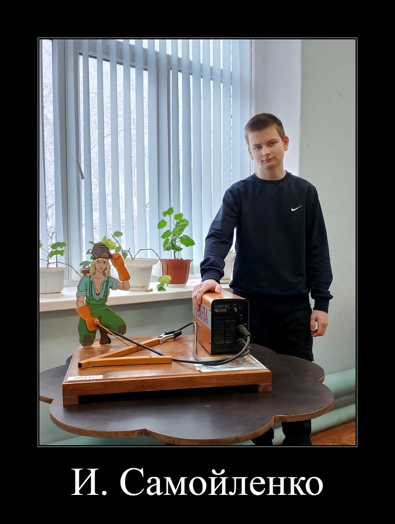 Студент 26 группы Илья Самойленко выбрал профессию сварщика. Парень пошел по стопам старшего брата Данилы, который в свое время с отличием закончил техникум, неоднократно становился призером региональных профессиональных олимпиад. Сейчас он находится в рядах вооруженных сил России, а Илья погружен в изучение тонкостей своей будущей специальности. По успеваемости учащийся техникума является отличником, также его кандидатура утверждена на получение Правительственной стипендии.
