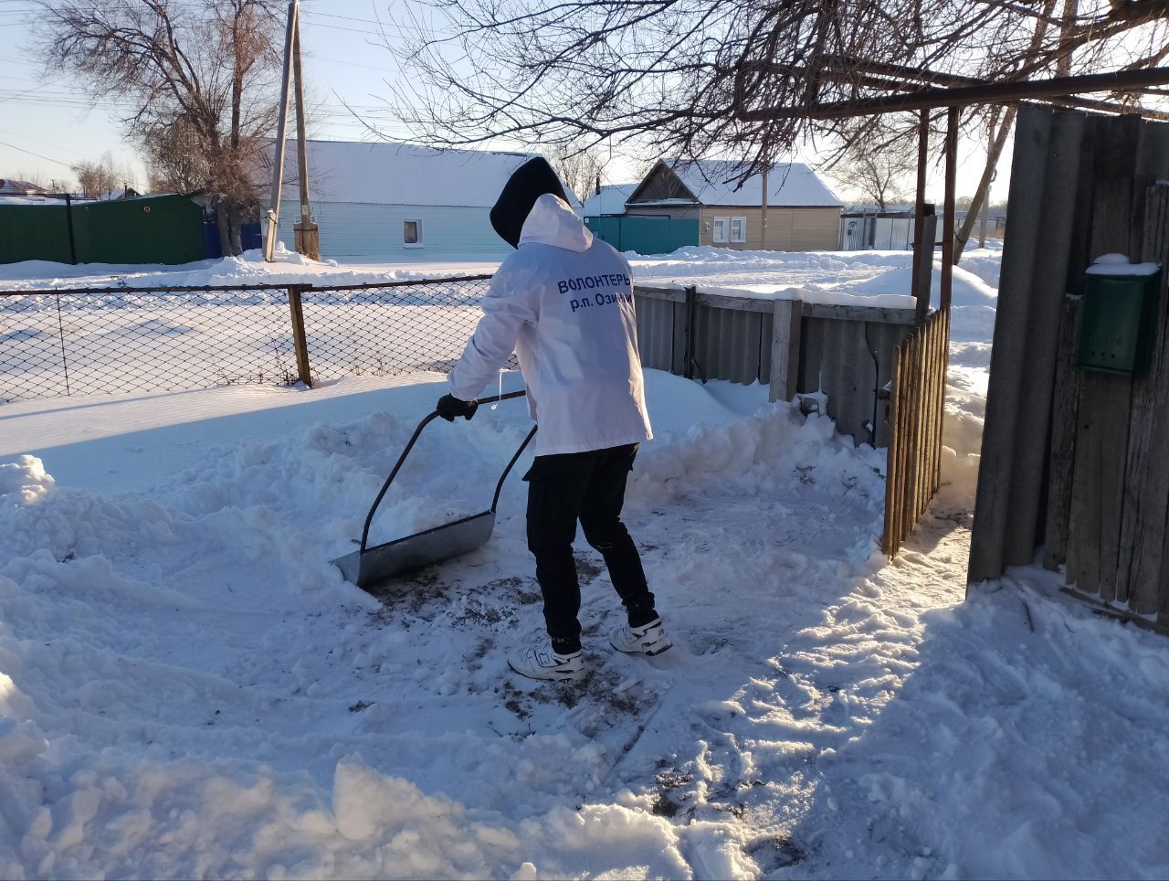 Поздравили именинницу, подарили цветы, пожелали крепкого здоровья и пришли на помощь, чтобы убрать территорию двора от снега.