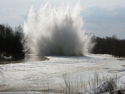 Чтобы избежать этого, спасатели выходят на лёд ещё до начала активного таяния. Они бурят шурфы (отверстия) и закладывают заряды. Когда лёд взрывают, он раскалывается на мелкие куски. Такая ледяная «шуга» уже не может образовать плотный затор - она легко проходит под мостами и уносится течением.
