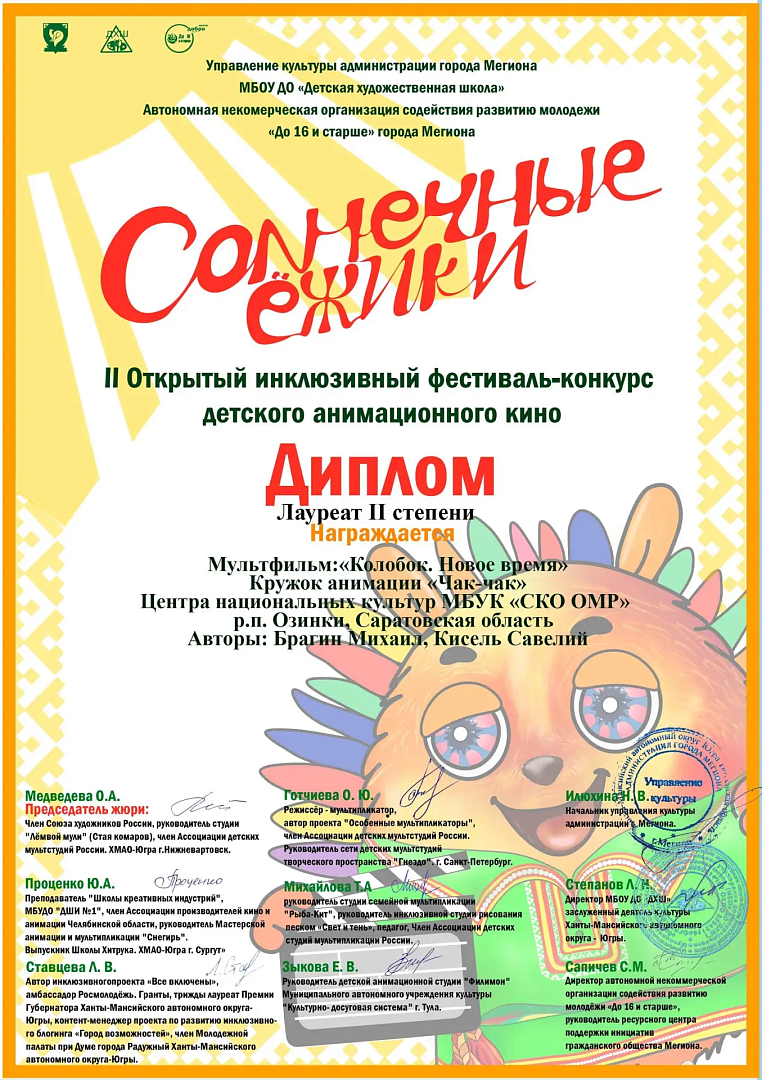 Недавно они завоевали Дипломы II и III степени в II Открытом инклюзивном фестивале-конкурсе детского анимационного кино «Солнечные Ёжики» — 2026!